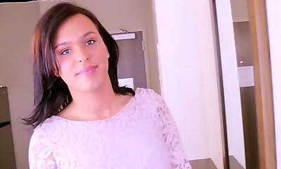 Trans dame with huge cock gives a hand-job to her neighbor while he masturbates her love rod and sucks on her big trans girl baps
