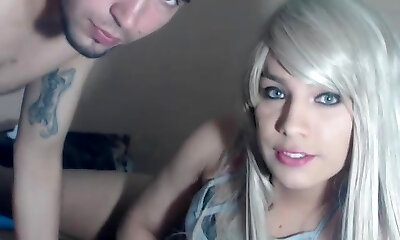 Huge dinky trans Mairana Cordoba and enormous cock trans TaniaQ share a guy and his ass letting him inhale them both off and then fuck